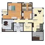 Personligt kassaskåp, balkong och strykjärn med strykbräda samt ugn, vattenkokare och köksredskap finns också här. Denna lägenhet erbjuder boende för upp till 5 gäster. Det finns handfat, duschkabin och tvättställ i ett badrum.